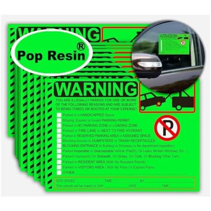 Parking tickets,Draw More Attention–These Fluorescent Green Parking Violation stickers are eye-catching to ensure that the message is emphasized and can’t be overlooked. These stickers are annoying for careless abusers and sweet justice for you. Sticking one of these Private Parking Area Warning stickers on a careless driver’s window or windshield will send a strong message. After having to remove one of these powerful stickers,a violator will be significantly less park in your private area.
